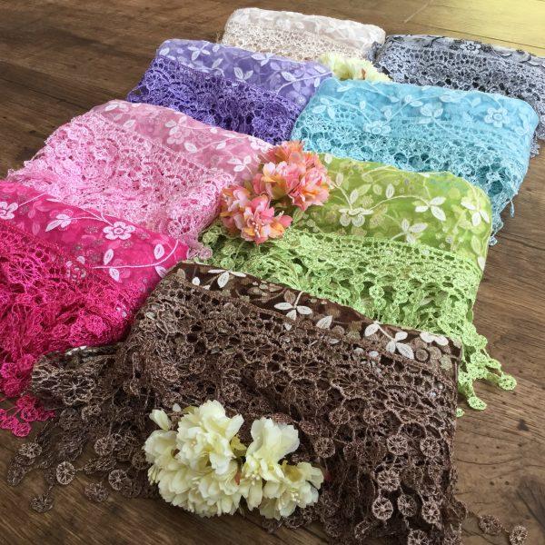 Bohém virágos, csipkés kendő rózsaszín, tört fehér, sárga, lila, kék színekben, poliészter anyagból készült. A terméket babafotózáshoz, születésnapra, esküvőre és Húsvétra ajánljuk. A virágos kendő rövidebb széleire gyönyörű csipke van varrva. Ha a termékkel kapcsolatban kérdése van a kapcsolat menü alatt érdeklődjön.