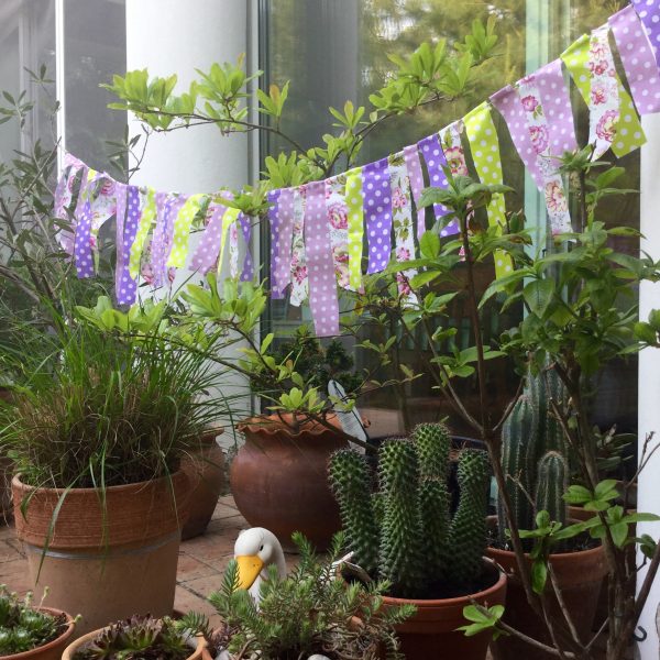 Lila és neonzöld pamut karton és virágmintás anyagból készült dekorációs füzér vidám tavaszi kiegészítő ideális teraszok, kertek dekorálására, fotózáshoz vagy gyerekszobába. A gyönyörű lila és zöld színek kombinálásával készült füzér Húsvétra is remek díszítője lehet lakásának. A szalagok varrással kerültek rögzítésre a füzéren, amelynek pontos méreteit a további információkban találja lentebb. A party dekorációs füzérekről a kapcsolatok menüpont alatt érdeklődhet, amennyiben tovább ikérdése van.