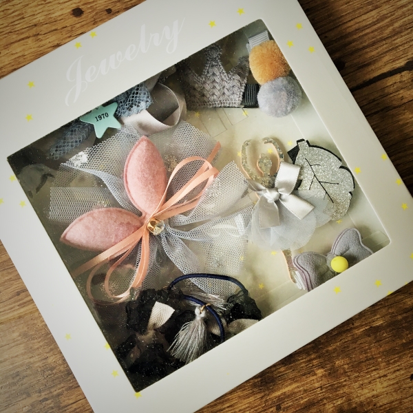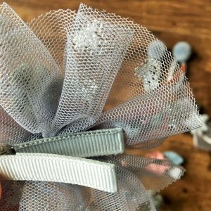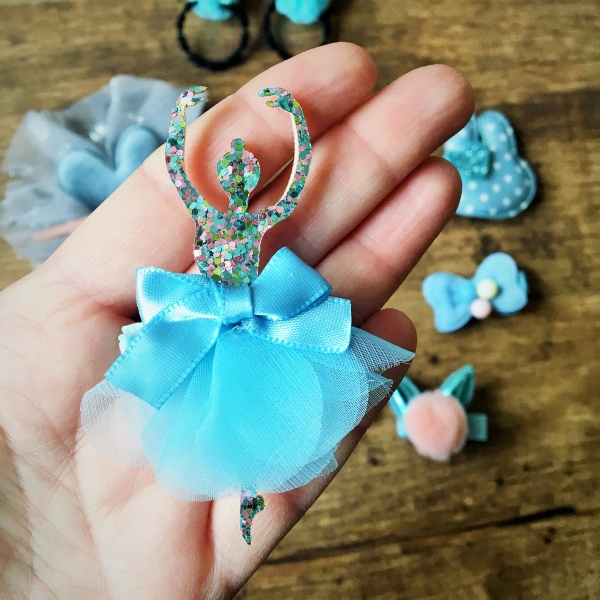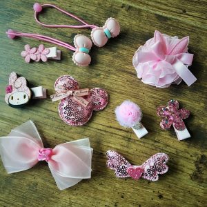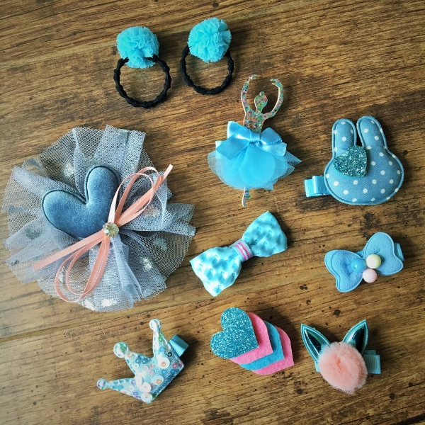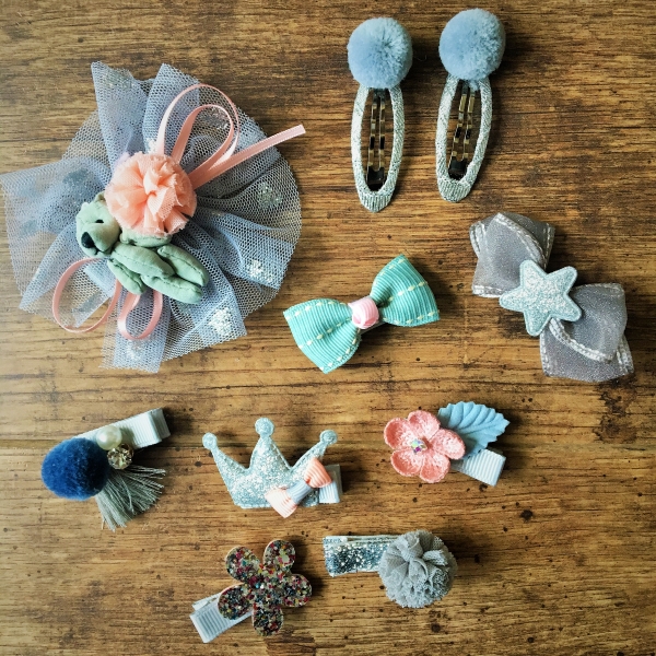 10 darabos hajcsat szett ajándékdobozban gyereknek ajánlott születésnapra, Húsvétra, Karácsonyra. A balerina, Minie egér, mackó, nyuszifül formájú csat és a színben, stílusban hozzá illő egyéb masnik, hajgumik, pompomok ideális ajándék ovis kislányoknak. A csatok flitteres anyagból, tüllből, filcből készültek és szalaggal borított fém csipeszes csaton ragasztással vannak rögzítve. A videó a galériában megtekintheti az ilyen és hasonló csatokról készült filmet. Válassza ki a hajcsat típusát és ezután megjelnik a képen a kívánt darab, majd az Önnek tetsző szettet helyezheti a kosárba. Az ár tartalmazza a díszdobozt is.