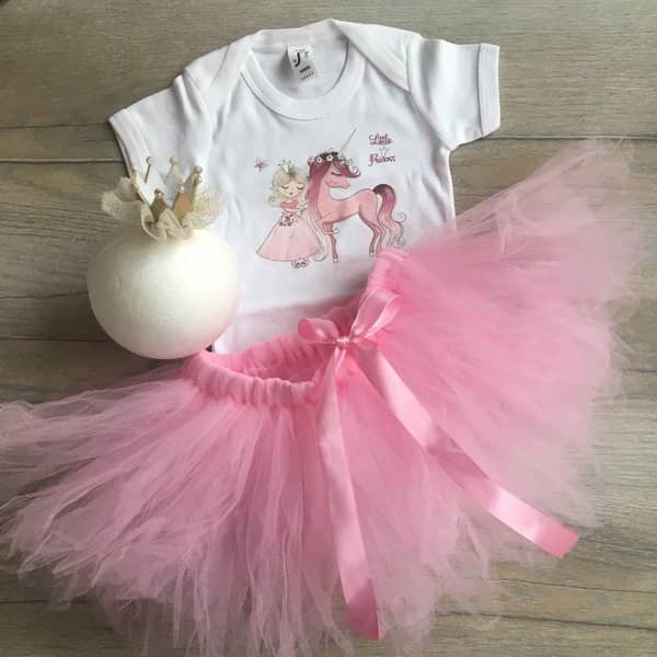 Babafotózáshoz ideális Little princess feliratos body, rózsaszínű tütü szoknya, rózsaszín selyem szalaggal és arany korona fejpánttal . Ez a babaruha fotózási kellék, mindennapi használatra nem ajánlott. A szett rövid ujjú fazonnal készül, a készleten lévő méret kiválasztásánál kérjük ellenőrizze a body fazonját. A felirat matricával került a bodyra, mosás után a matrica közvetlenül nem vasalható csak kifordított állapotban. A tütü gumis derekú, a pontos méretek az életkor kiválasztása után jelennek meg, ezután tudja kosárba helyezni a szettet. Ha más méretben szeretne rendelni, kérem emailben érdeklődjön.