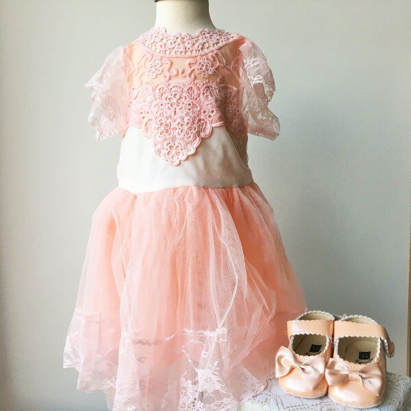Gyönyörű csipke betéttel készült puha tüll alkalmi ruha babáknak esküvőre, születésnapra. A gyerekruha hátul a nyakánál egy gombbal záródik, felső része bélelt, elöl derék részig csodaszép rugalmas puha csipkével és tülltel díszített. Szoknyája 4 rétegű, a külső tüll szoknya könnyed csikével díszített. Pontos méret az életkor kiválasztása után jelenik meg. Mivel a ruha a hátulján nem zipzáros, kérem a derékbőséget ellenőrizze, hogy a mellrészen is megfelelő legyen, a lány ruha felső része kis mértékben rugalmas.
