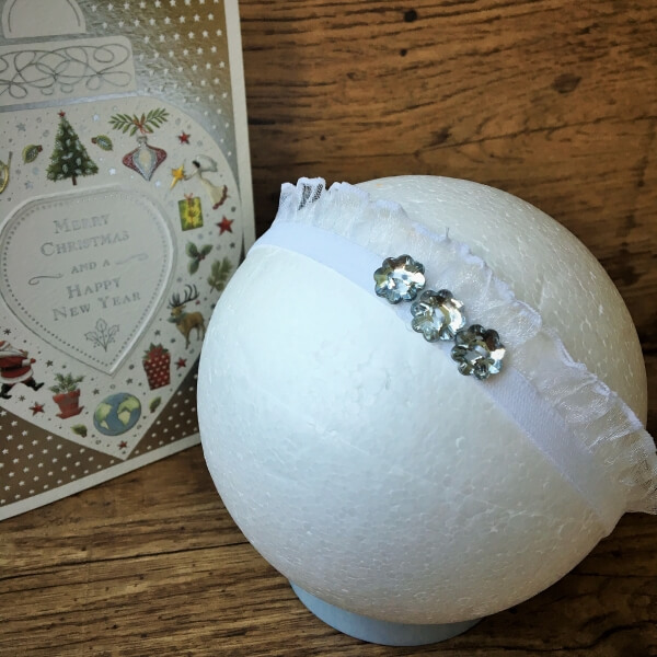 Gumiszalagos fejpánt organza fodorral és 3 db virág alakú csillogó gombbal díszítve 0-12 hónapos babák részére keresztelőre vagy újszülött fotózáshoz ajánlott. A kiegészítő kézzel készült, minden eleme varrott és többféle méretben választható. A szalag szélessége gumival együtt kb 2 cm. Webáruházunkban a fejpánthoz illő csipkés felsőket, keresztelőruhát és cipőt is talál.