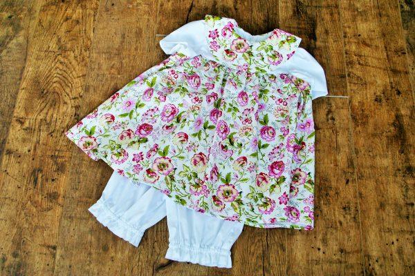 Elegáns fehér rövid nadrág és virág mintás körgalléros nyári ruha, amely hátul cipzárral záródik. Ideális választás anyák napjára, születésnapra, húsvétra, fotózáshoz. A termékből csak egyféle méret készült, rendelés előtt kérem ellenőrizze gyermeke méreteit.