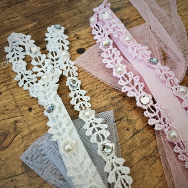 Strassz kővel és gyönggyel díszített csipkés fejpánt, puha gumiból és puha tüll szalagból készült baba fejpánt, fotózáshoz, keresztelőre alkalmakra, akár szültésnapra is egy éves korig. A romantikus fejpántot könnyed apróvirágos csipke díszíti. Pontos méret a szín kiválasztása után jelenik meg, a terméket ezután helyezheti a kosárba. Amennyiben nincsen készleten vagy más színben, méretben szeretne rendelni, kérem a kapcsolat menü alatt található űrlapon érdeklődjön.