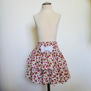 Piros szamócás apró mintás vászon szoknya fodorral, derekán középen pedig fehér masnival díszítve. Ideális választás anyáknapi ünnepségre, szavalóversenyre, húsvétra és egyéb ünnepi alkalmakra. Dereka 2cm-es puha gumival behúzott. Masni 8×5 cm. Az életkor kiválasztása után a pontos cm adatok lent megjelennek, kérjük rendelés előtt ellenőrizze gyermeke méreteit. Életkor szerint a következő cimkéket tartalmazzák a kislány szoknyák: 3-6 hó (62-68) ; 9-12 hó (74-80); 18-24 hó (86-92), 3-4 év (98-104); 5-6 év (110-116); 7-8 év (122-128).