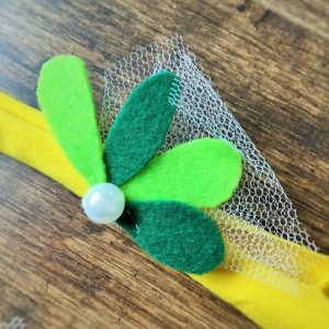 A gyönyörű tavaszi színekben készült fejpánt babafotózáshoz vagy Húsvéti kiegészítőnek ajánlott. A puha pamutból készült pántra a filcből készült levelek és gyöngy kézzel vannak felvarrva. A termék nem csúsztatható pántos, pontos méret a további információk alatt, egyéb . Az élénk sárga színű alapon halvány és sötétebb zöld levelek a rügyező természetet, a tavasz eljövetelét idézik. Használhatja ezt a pántot természeti környezet témájú újszülött fotók készítéséhez is.