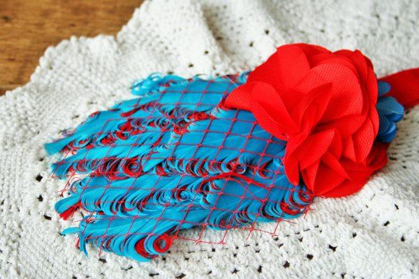 Kék és piros színű tollas fejpánt babafotózáshoz születésnapra vagy egyéb alkalmakra. A fejpánt egy hálós díszt is tartalmaz, valamint chiffon anyagból készült piros virág díszíti. A fejrész rögzítését egy rugalmas puha piros gumi szolgálja. Hasonló stílusú babafotózáshoz használt fotószetteket talál webáruházunkban a kiegészítők és gyerekruhák menüpont alatt. Kérdés esetén kérem a kapcsolatok menüpontban érdeklődjön.