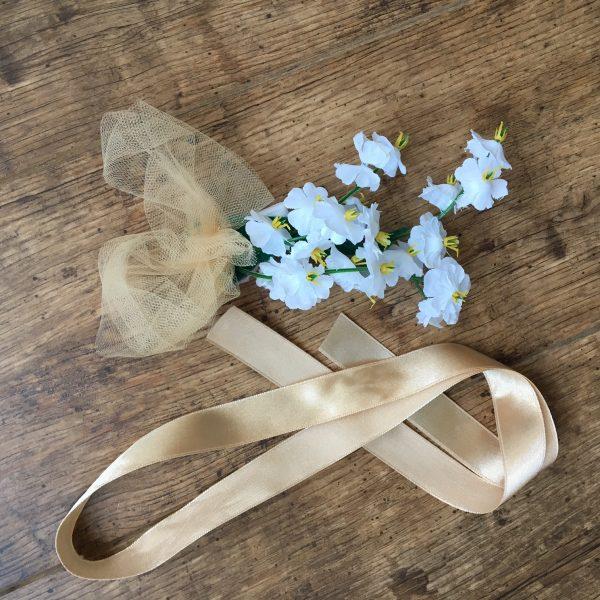 | Méret | Csukló 11cm, Derékbőség 40 cm, Hossz 20-22cm, Szalag 80cm, Virág átmérő 13cm |